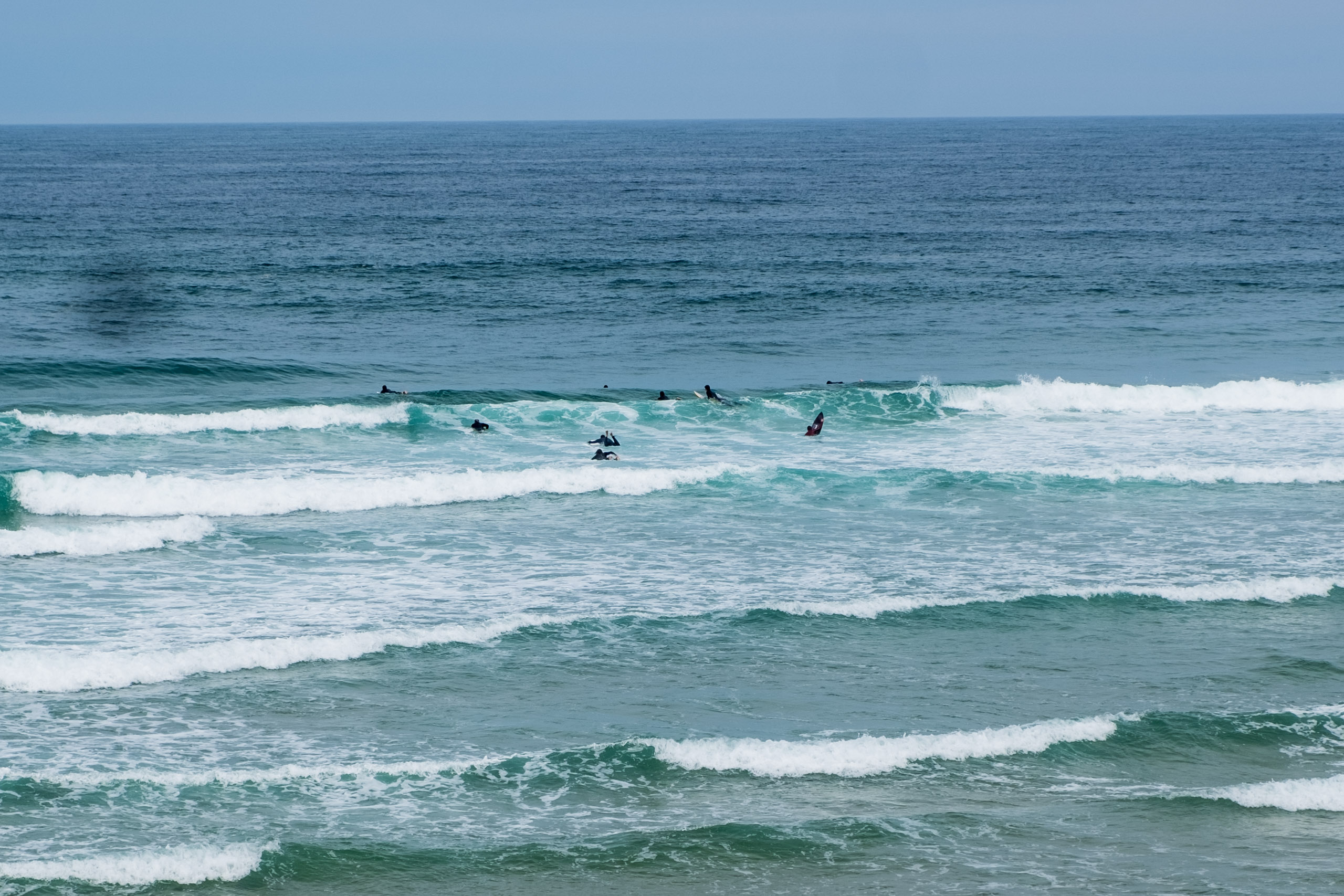 Anschließend machten wir uns auf den Rückweg in die Stadt Lacanau Ocean. Dort angekommen, schlenderten wir entspannt durch die lebhafte Strandpromenade. Die Geschäfte und Cafés luden zum Stöbern und Verweilen ein. Wir setzten uns kurz ans Wasser und schauten den Surfern zu, die ihre Versuche wagten, die Wellen zu bezwingen. Es war faszinierend zu sehen, wie sie sich mit Geschick und Ausdauer immer wieder auf ihre Bretter kämpften.