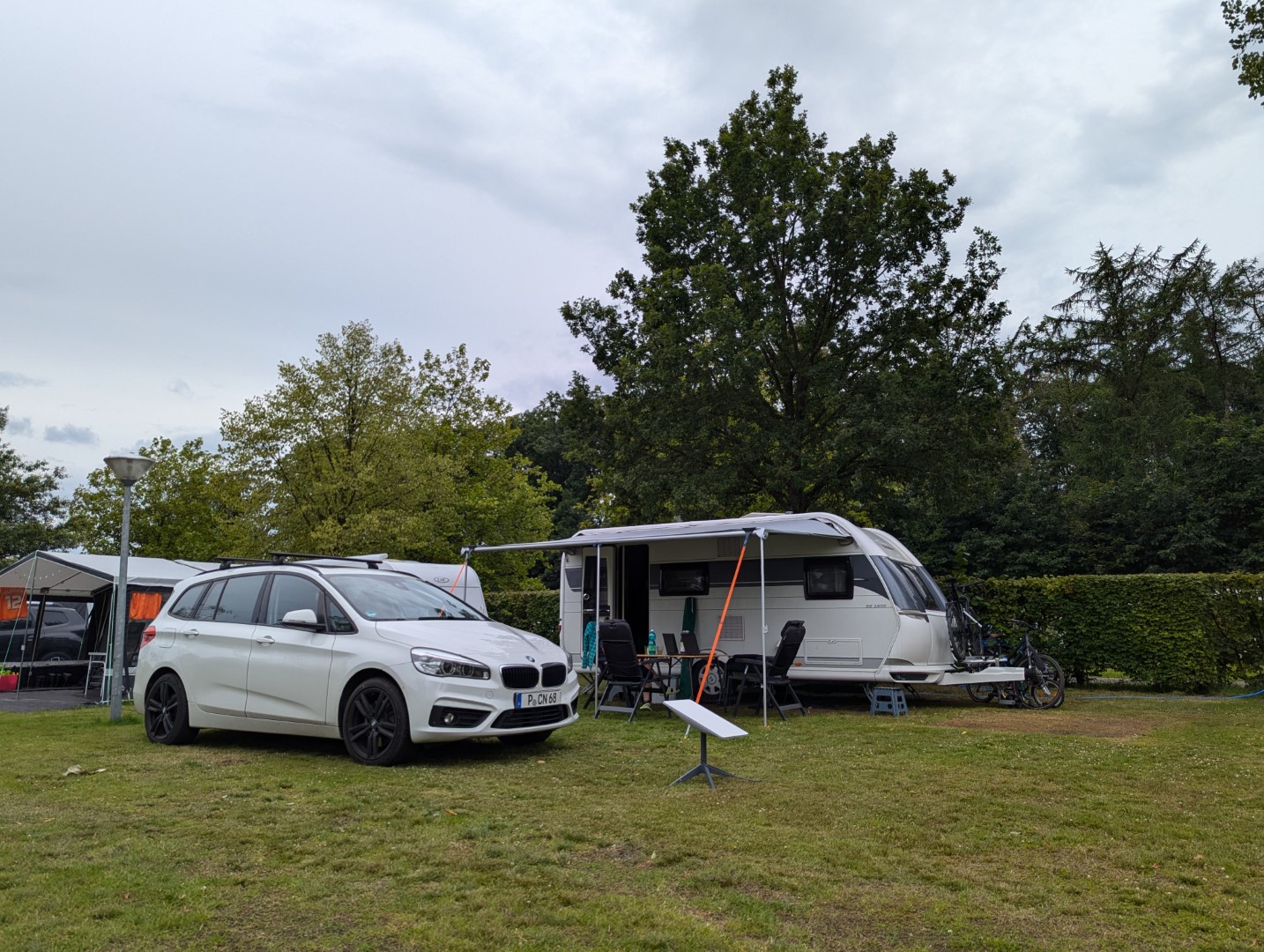 Da wir viel zu früh für den neuen Campingplatz ankamen, beschlossen wir, eine Pause auf einem Rasthof einzulegen. Eine Stunde lang erholten wir uns dort, bevor wir pünktlich um 12:55 Uhr unseren neuen Campingplatz erreichten.