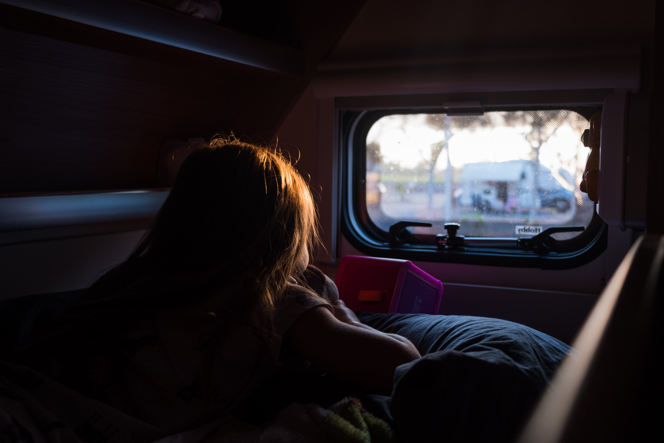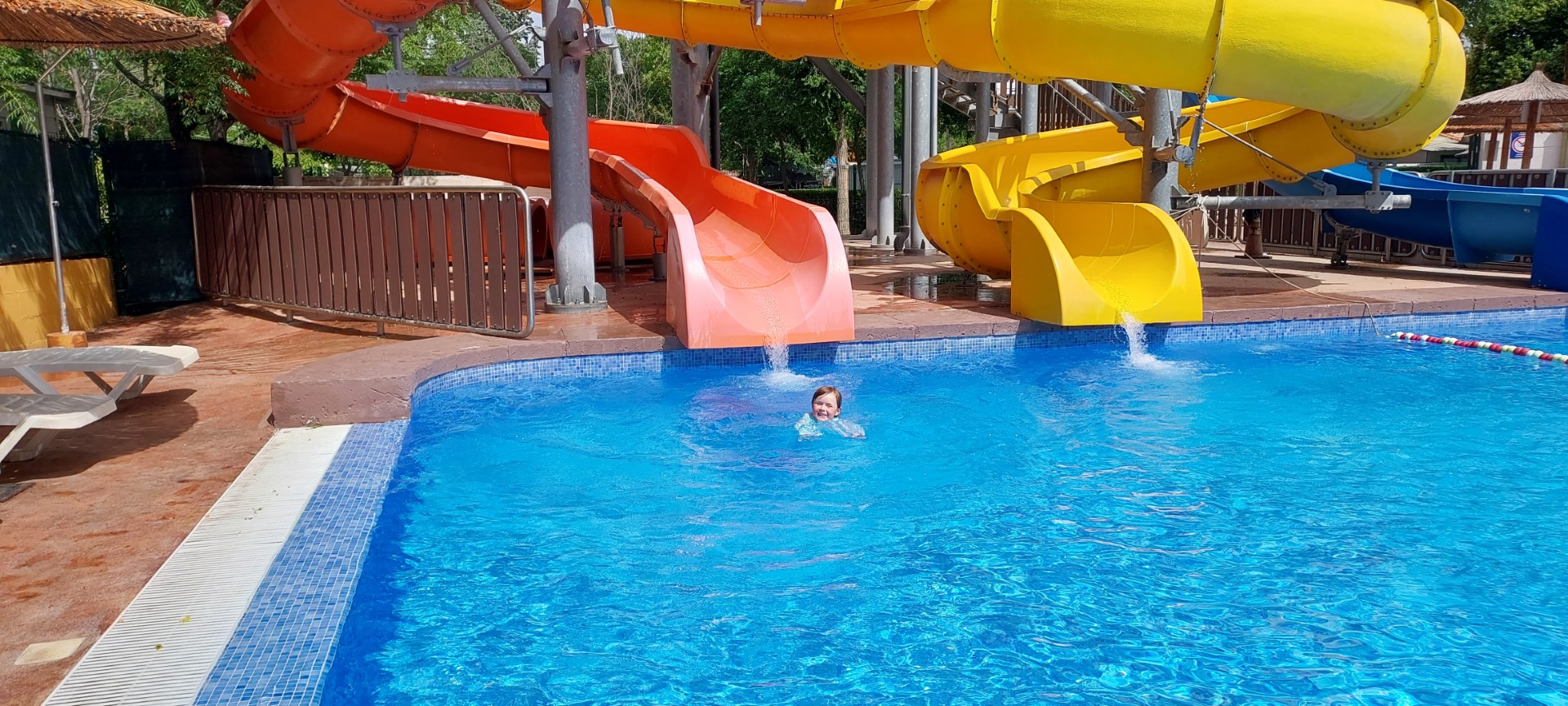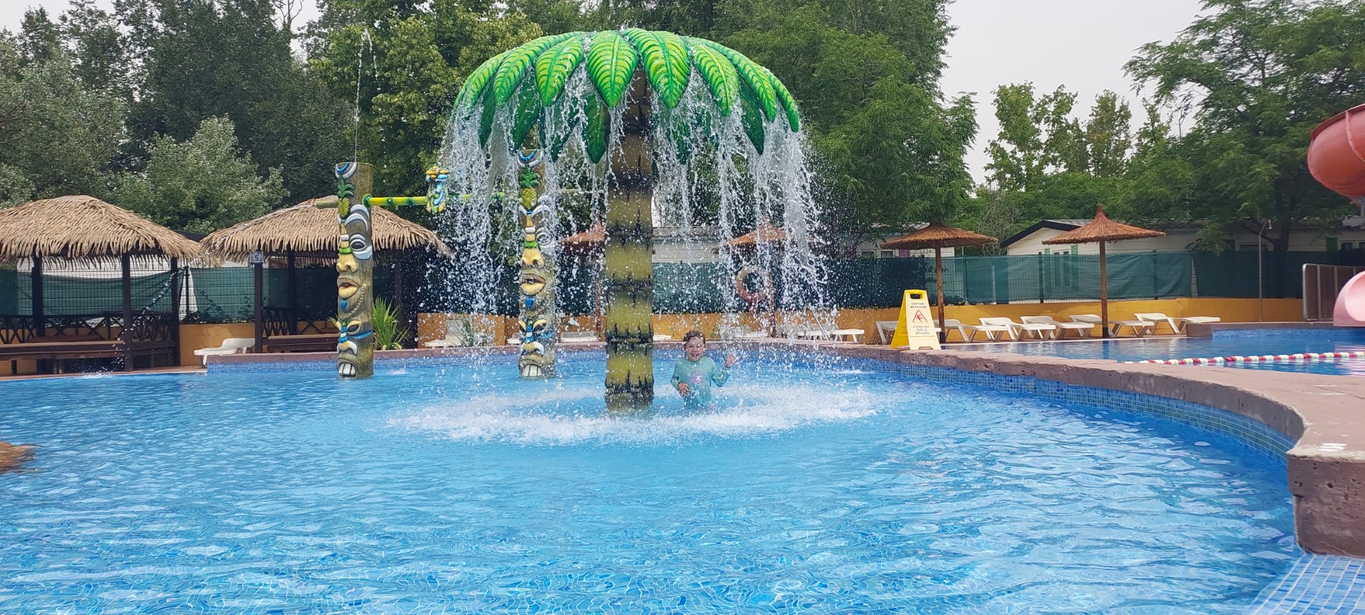 Anschließend hieß es wieder nach Hause. Chris begann zu arbeiten (diesmal im Wohnwagen, draußen war es zu warm) und Dine und Sammy verbrachten erst ein wenig Zeit beim Wohnwagen mit Malen und Spielen. Dann wurde es aber selbst dafür zu warm – 35 Grad wurden heute erreicht – und so ging es für die beiden zum Pool.