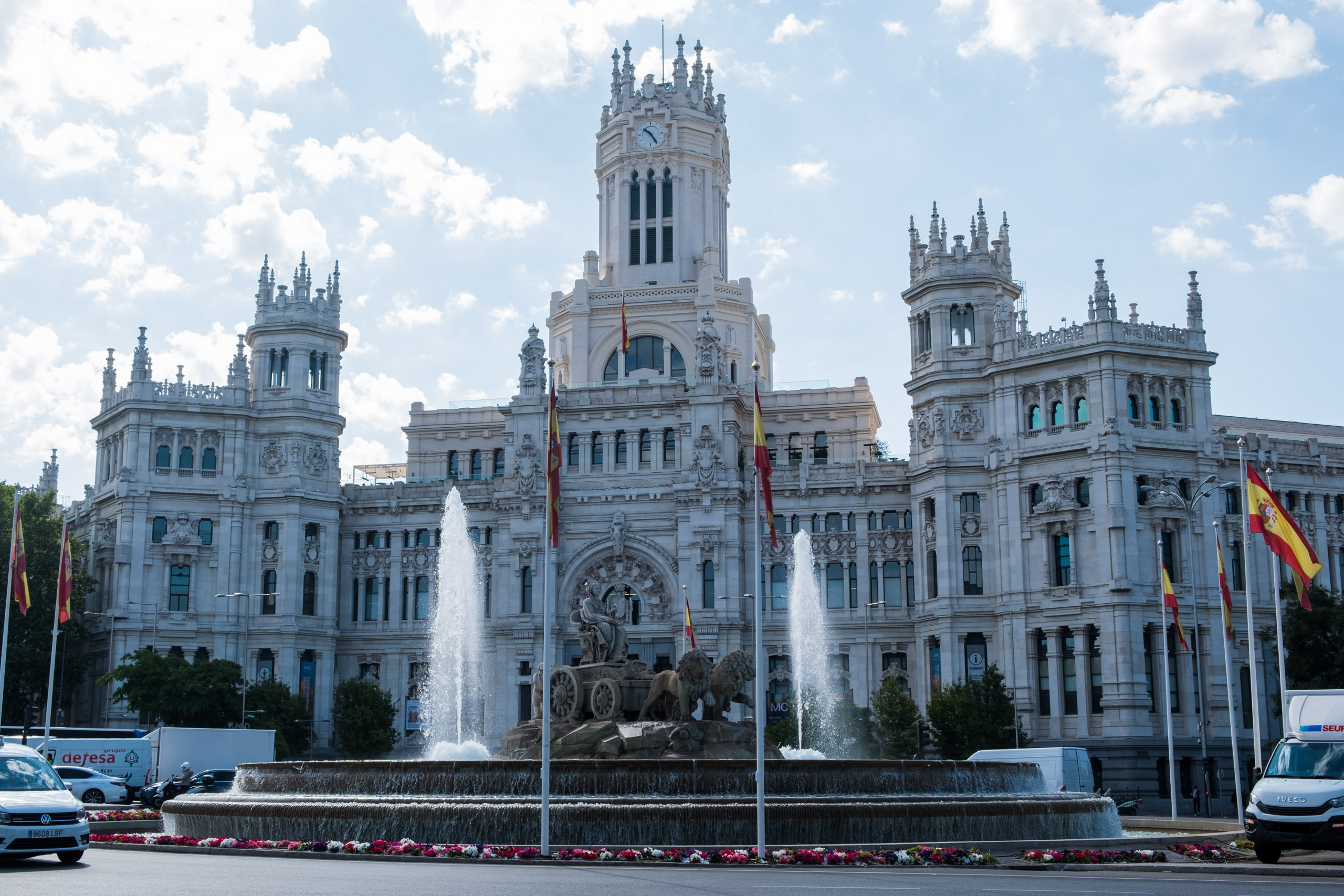 Dann ging es weiter zur “Fuente de Cibeles”, einem monumentalen Brunnen, der die Göttin Kybele auf einem von Löwen gezogenen Wagen darstellt und ein beliebter Treffpunkt in der Stadt ist.