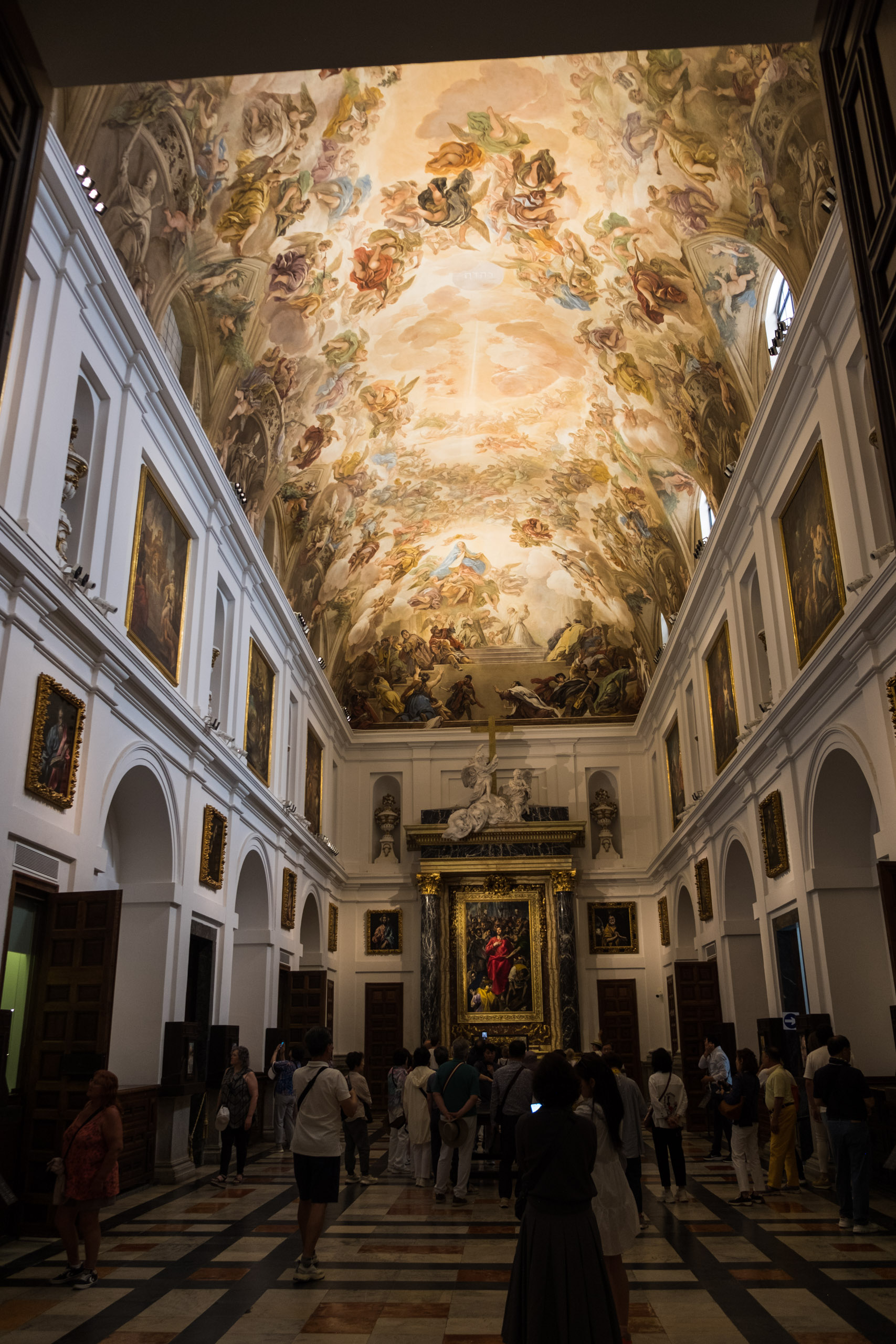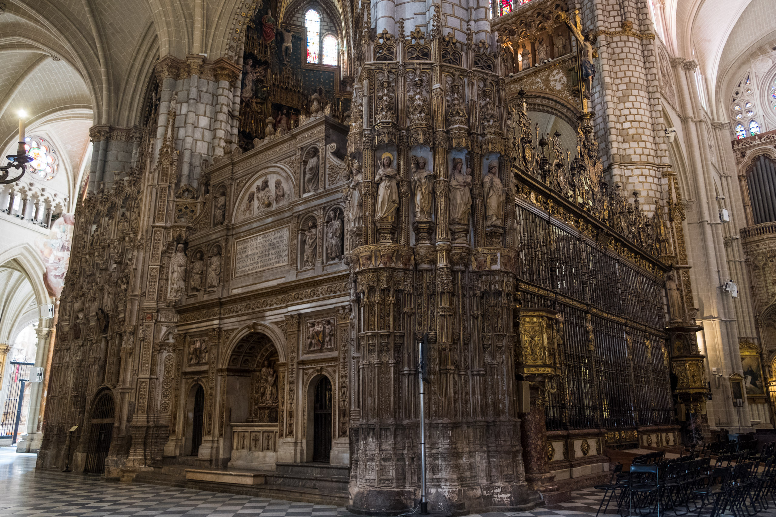 Leider war das Bauwerk noch geschlossen, also entschieden wir uns, zunächst zur Kathedrale von Toledo weiterzugehen. Hier entdeckten wir einen unscheinbaren Seiteneingang, der allerdings nur einen kleinen Bereich von etwa 10x10 Metern zugänglich machte. Doch selbst dieser begrenzte Einblick war atemberaubend. Die Details, die wir sehen konnten, waren überwältigend – jede Ecke war kunstvoll verziert. Zu diesem Zeitpunkt waren wir noch unsicher, warum wir nicht weiter hineingelangen konnten.