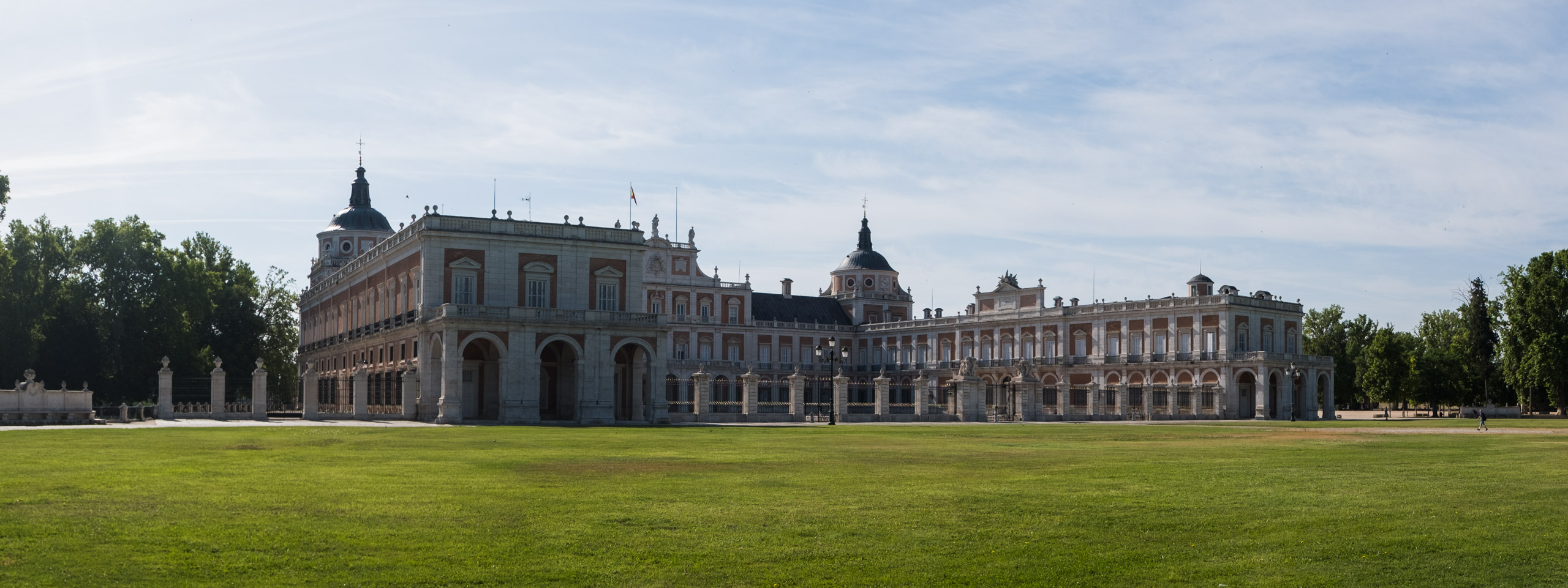 Heute hieß es zwar wieder etwas früher aufstehen, der Tag sollte aber nicht allzu anstrengend werden. Um 7 Uhr klingelte der Wecker, und zum Frühstück gab es nur eine Banane. Dann ging es mit dem Fahrrad Richtung “Palacio Real” bei unserem Campingplatz in Aranjuez. Der „Palacio Real de Aranjuez“ ist ein beeindruckendes Beispiel für barocke Architektur und diente einst als Frühlingsresidenz der spanischen Könige. Die Fahrt dorthin dauerte nur etwa 10 Minuten.