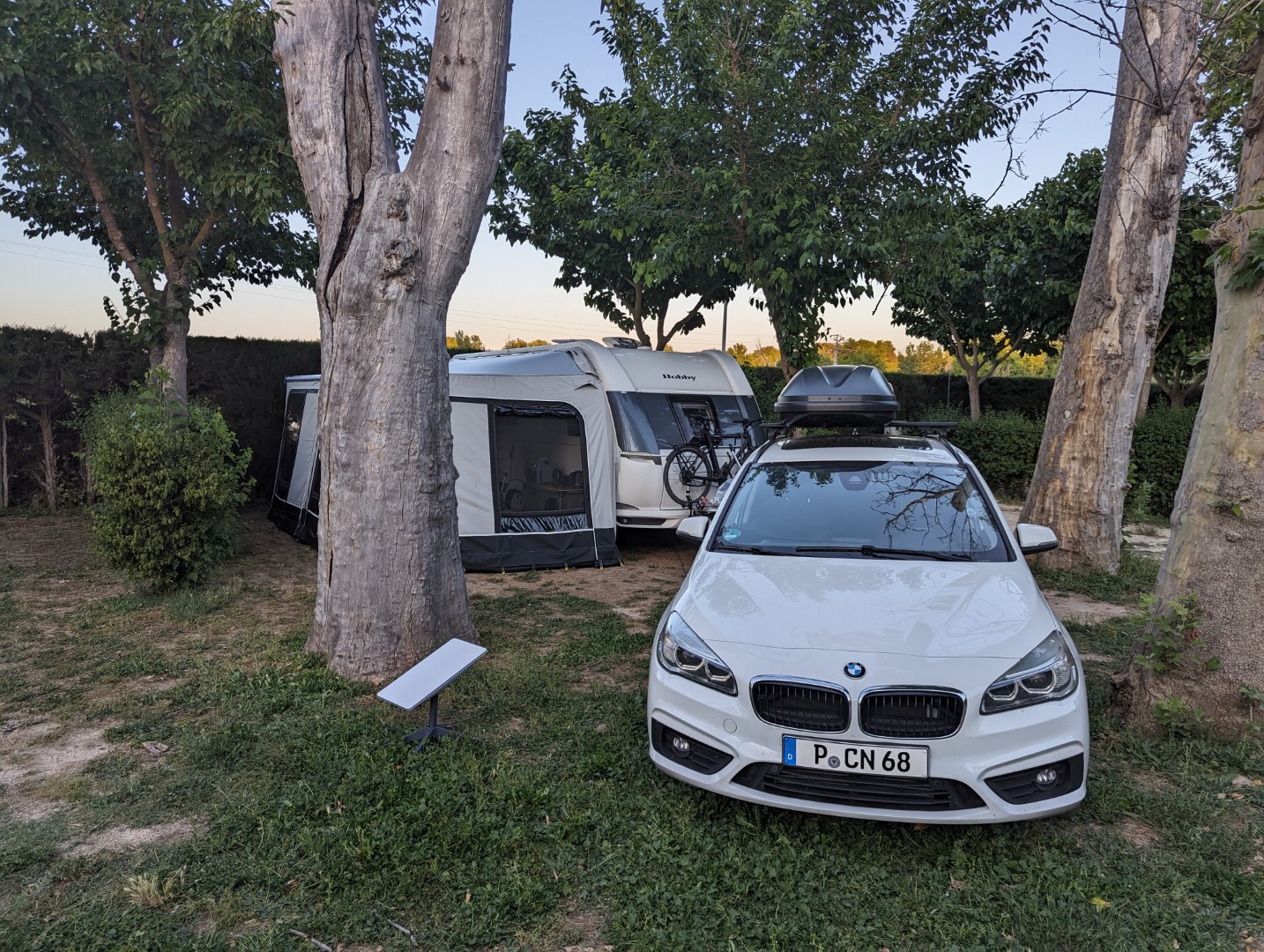Der Tag endete mit einem entspannten Abend im Vorzelt, wo wir die warme Nachtluft genossen und uns auf die Erkundung von Aranjuez und seinen wunderschönen Gärten freuten.