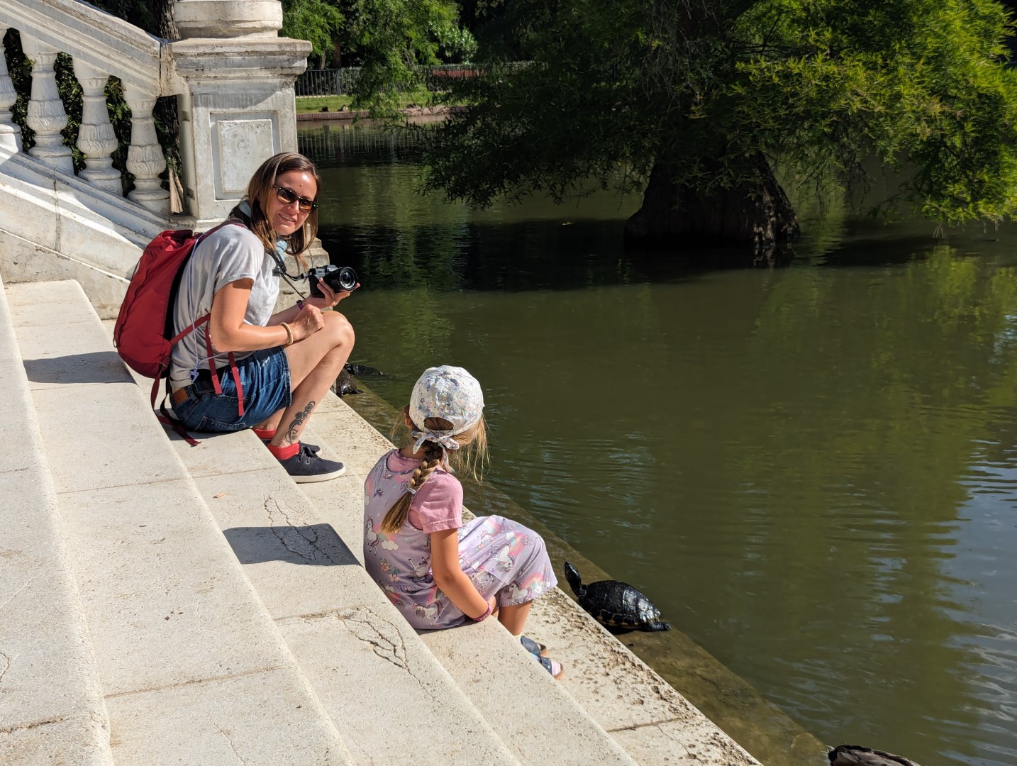 Davor lag ein kleiner See, der “Estanque del Palacio de Cristal, Parque del Retiro”, welcher zum kurzweiligen Verweilen einlud. Hier konnte Sammy schwarze Schwäne (nein, nicht Dine) und Schildkröten aus nächster Nähe beobachten.