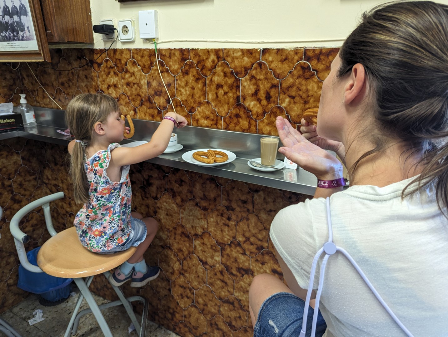 Dass es zum Frühstück nicht so viel zu essen gab, hatte einen Grund. Die letzten zwei Tage wollten wir zum Dessert eigentlich immer Churros essen, waren aber so satt, dass wir einfach nichts mehr essen konnten. Also fanden wir ein örtliches Lokal, wo man sich schon sehr über uns gewundert hatte. Anscheinend kommen dort nicht so häufig Touristen hin. Gekauft haben wir insgesamt: zwei Kaffee, eine Schokolade und neun Churros. Gekostet hat das Ganze 6,05 Euro – unglaublich günstig! 😊